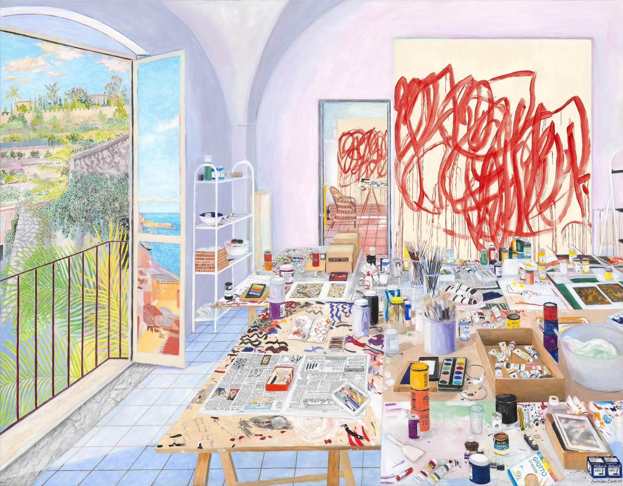 Keith Haring’s Studio at the Cable Building, NYC, 2025, oil + acrylic on canvas, 66 x 78in (168 x 198cm)